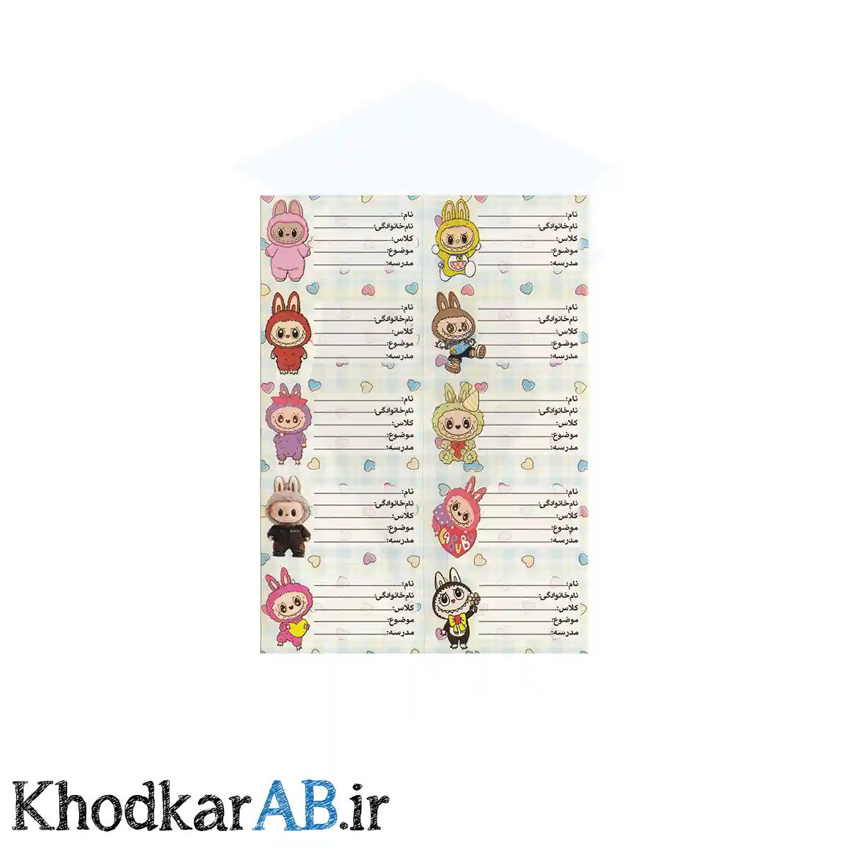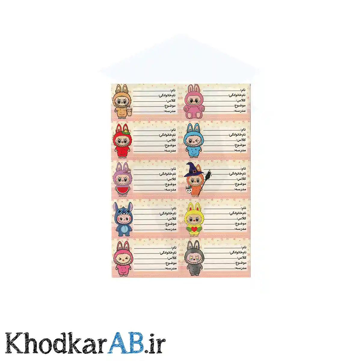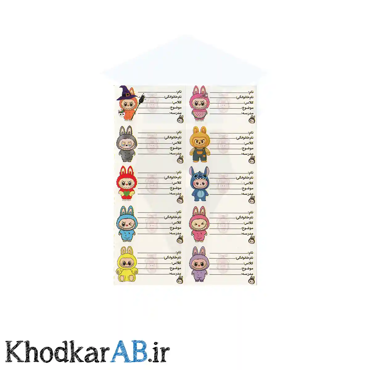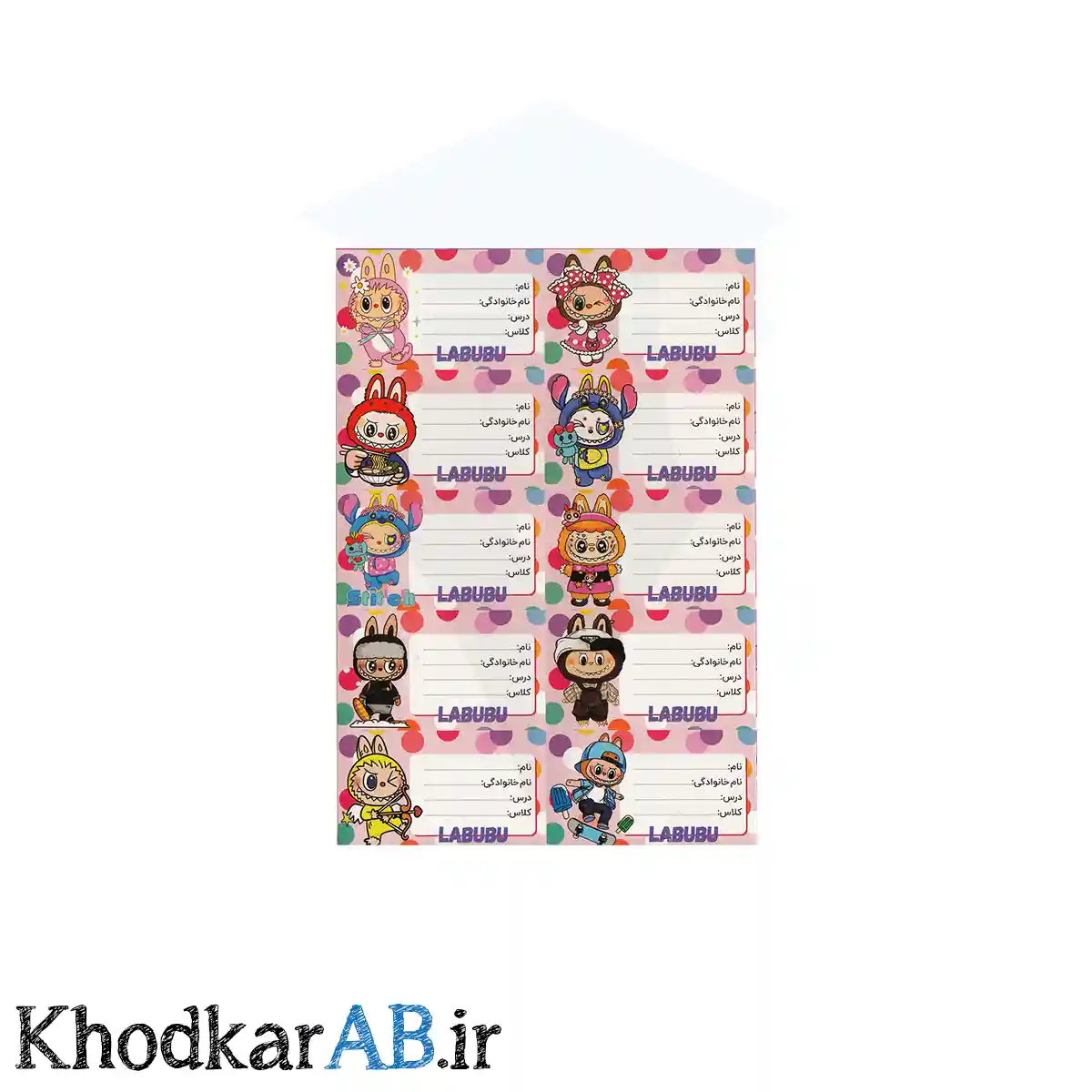 طرح لبوبو رنگارنگ و دوستداشتنیه و هم برای پسرا و هم دخترا مناسبه. این برچسبها به راحتی روی جلد کتاب و دفتر میچسبن و بهت کمک میکنن لوازمت رو مرتبتر نگه داری.