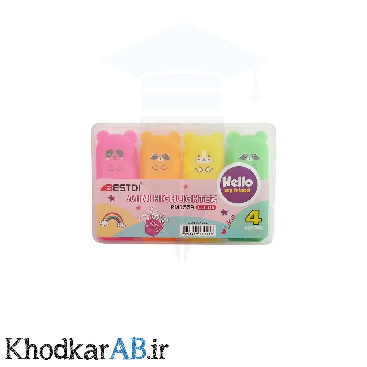 هایلایتر تدی بسته ۴ عددی، ترکیبی از طراحی فانتزی و کاربرد واقعی برای همهٔ عاشقان نوشتافزار خوشگل و باکیفیته! 🐻 این بسته شامل ۴ رنگ پاستلی خوشرنگ و چشمنوازه که معمولاً شامل زرد، صورتی، سبز و نارنجی میشه. هر کدوم از هایلایترها یه خرس تدی بامزه روی درپوشش داره که دل هر دانشآموز، دانشجو یا حتی بزرگسالی رو میبره!