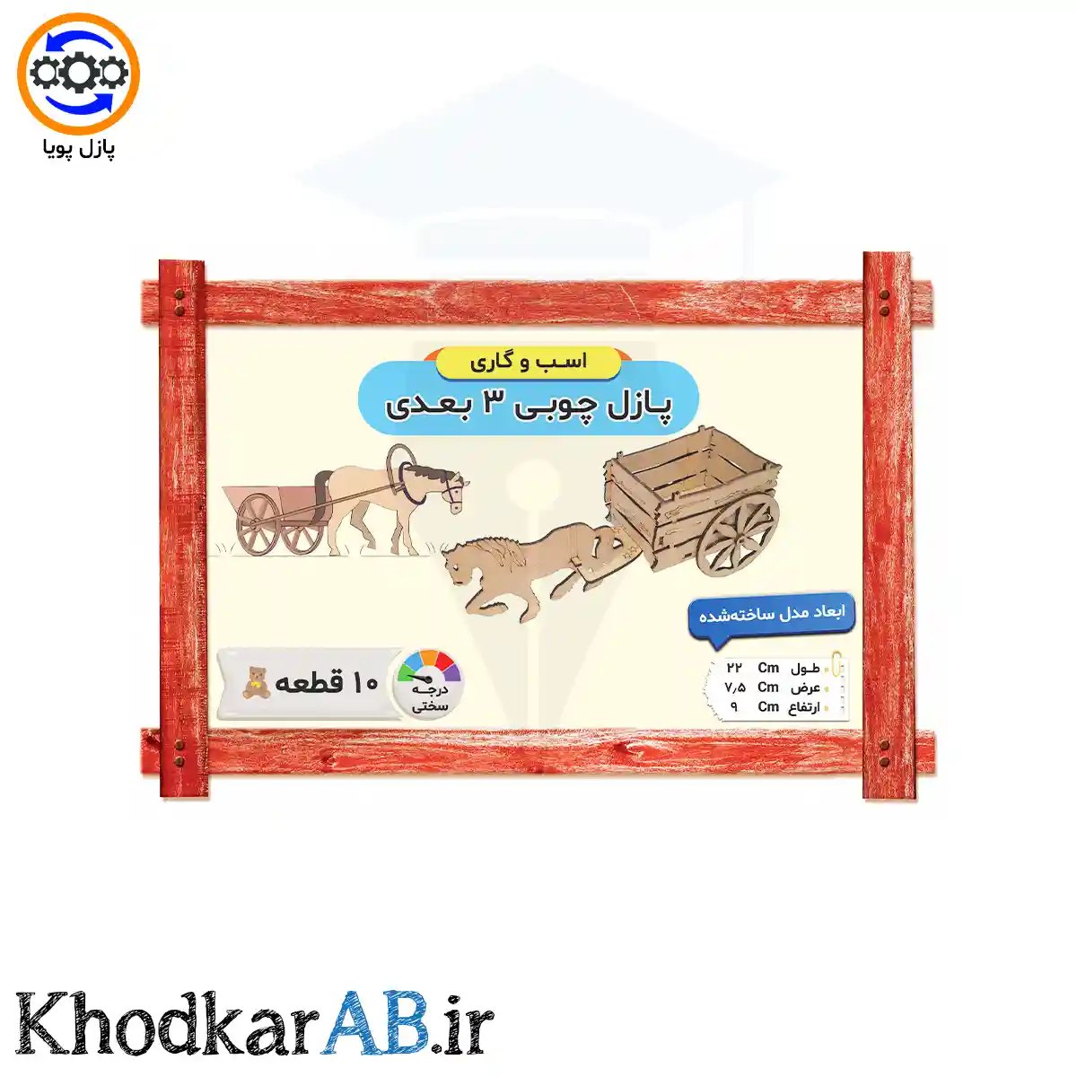 مشخصات فنی پازل چوبی ۳ بعدی اسب و گاری